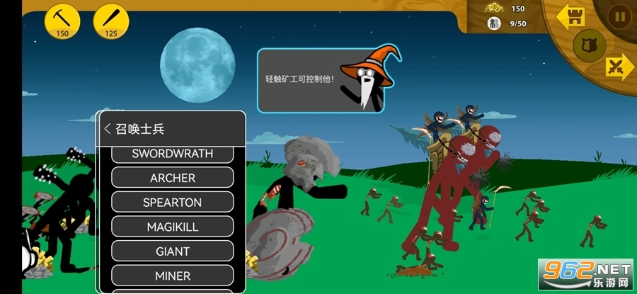 1.游戏中玩家将亲临激烈刺激的战场,指挥你的火柴人勇士进行作战,而且游戏中有着各种火柴人士兵可供训练。