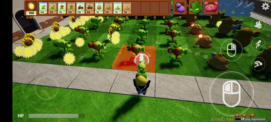 突破传统玩法,玩家可操控植物角色与僵尸近身搏斗:豌豆射手可发射连珠弹,坚果墙能挥拳砸击,大嘴花则可吞噬敌人。结合3D场景中的障碍物与地形高低差,战斗体验更具策略性。