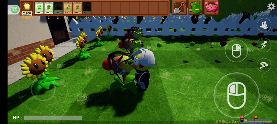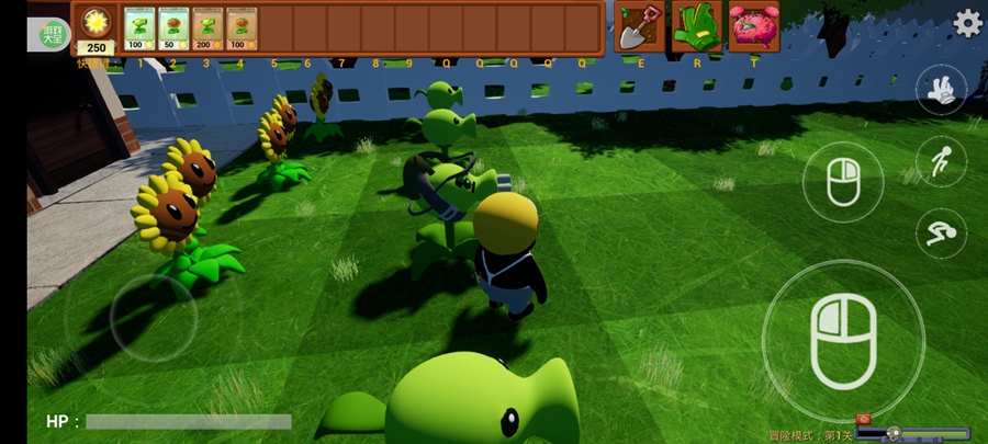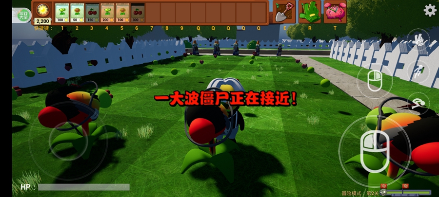 游戏采用全3D建模与动态物理引擎,阳光草坪、墓地迷雾、水下关卡等场景细节丰富,植物与僵尸的动作流畅自然。例如,僵尸啃食植物的动态、向日葵摇摆的节奏、爆炸特效的冲击波均以3D形式呈现,搭配第一人称视角切换功能,玩家可化身植物直面僵尸大军,感受压迫感十足的战场氛围。