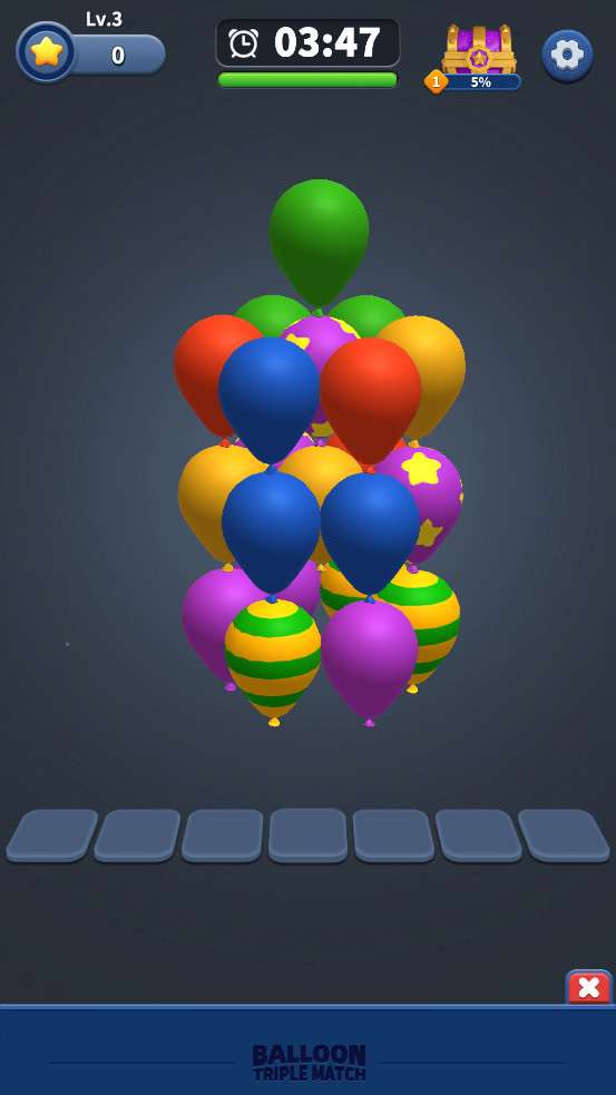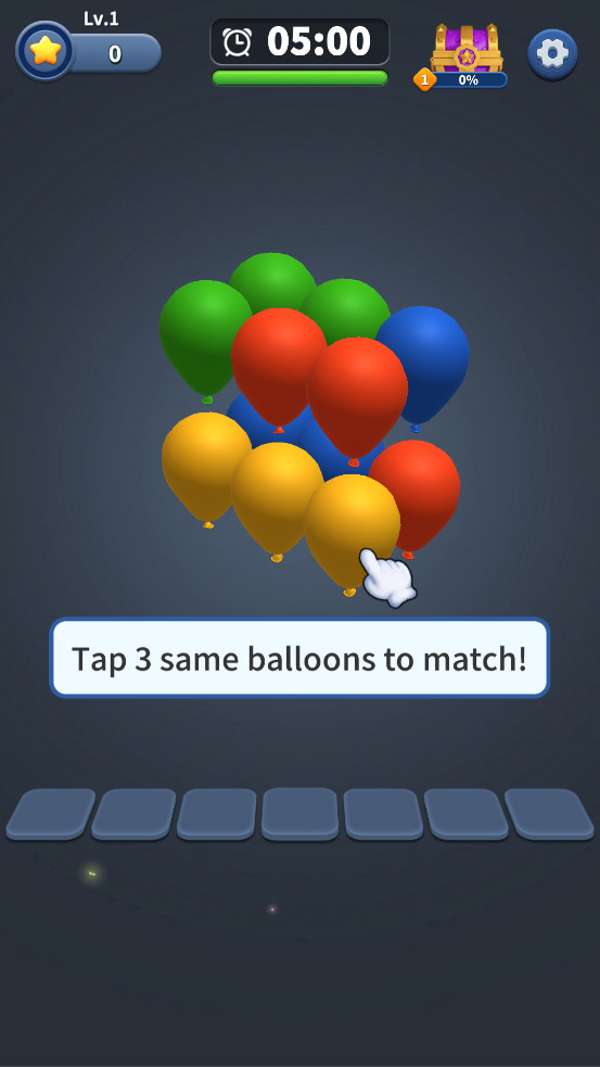 点击拾取3个相同颜色的气球并消除它们!