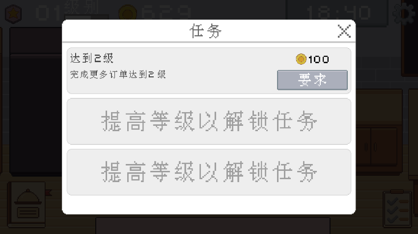 接受客户订单,前往超市购买食材和工具,为顾客准备美味佳肴,您可以亲自完成所有任务,或者委派任务雇佣员工!