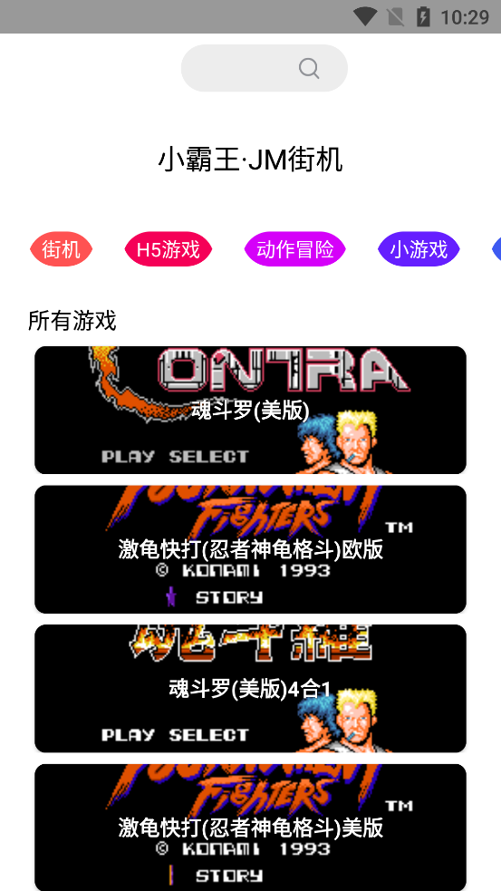 JM街机手机版精心收录了包括《魂斗罗》、《冒险岛》、《双截龙》在内的众多经典街机游戏,每一款都是游戏史上的璀璨明珠,承载着无数玩家的青春记忆。在这里,你可以再次扮演《魂斗罗》中的比尔和兰斯,穿梭于枪林弹雨之中,用精准的射击和默契的配合征服一个个难关;或是成为《冒险岛》中的勇士,踏上拯救世界的征途,利用丰富的道具和技能,探索未知的岛屿,击败邪恶的Boss;亦或是在《双截龙》中,与兄弟并肩,用拳脚和武器书写属于自己的英雄传奇。