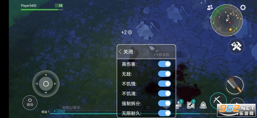 4.木头和和石灰石都是能捡的就算没带斧子和镐子也能捡出来然后制造斧子或镐子,要是你找不到就点左下方的Auto,他就会自动收集东西和战斗。