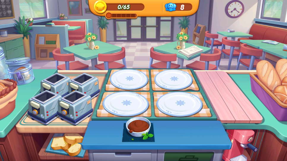 汉堡、甜甜圈、薯条、比萨......在特色主题餐厅的触犯中展示您的烹饪技巧。当然,别忘了升级你的食材和厨具。升级食材会让菜肴看起来更加美味,增加您的收入!高级的厨具也会让烹饪更加得心应手!