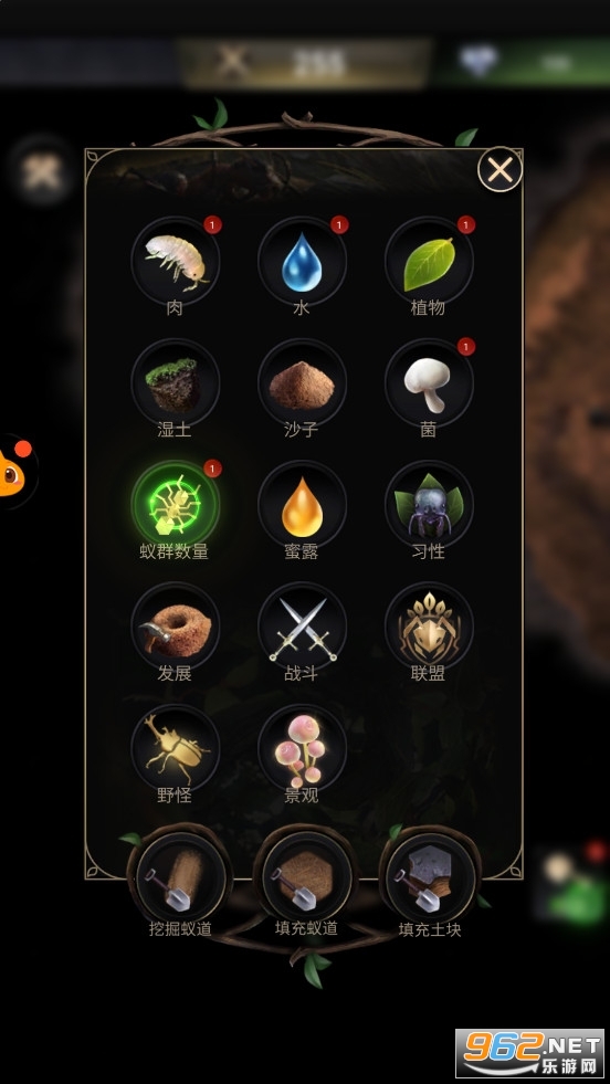 如果你选择了种植习性,那么在短时间之内,你将以超越寻常的速度发展蚁巢。