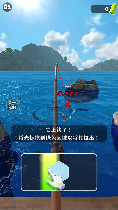 1、 进入游戏,走教学,注意观察漂相,这个就要你自己有一定的钓鱼经验了,一般来说 黑漂,顶漂、走漂的时候提竿容易中鱼。