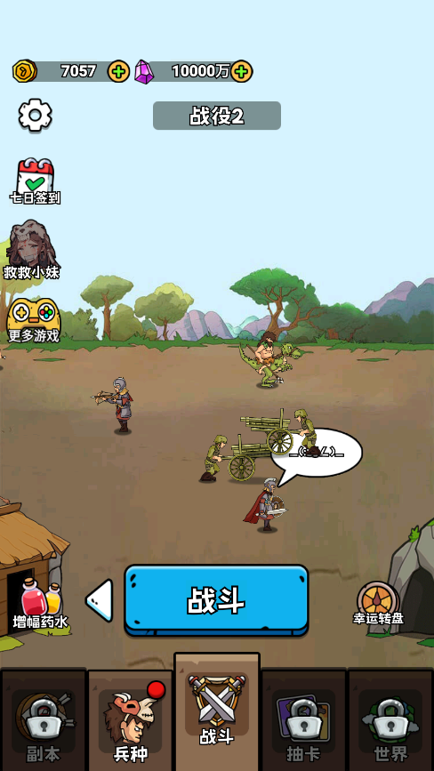 拖动倍率齿轮,兵种到上方,通过齿轮的转动制造士兵,点击继续战斗