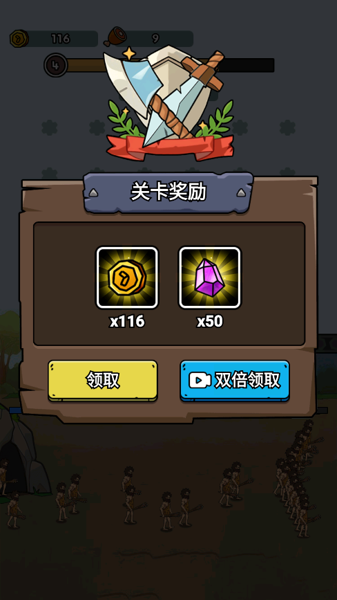 不断地制造士兵去战斗,直至摧毁敌方堡垒,获得关卡胜利,领取奖励