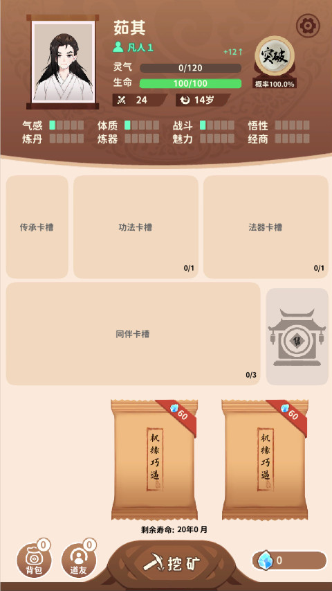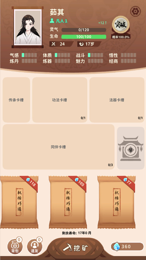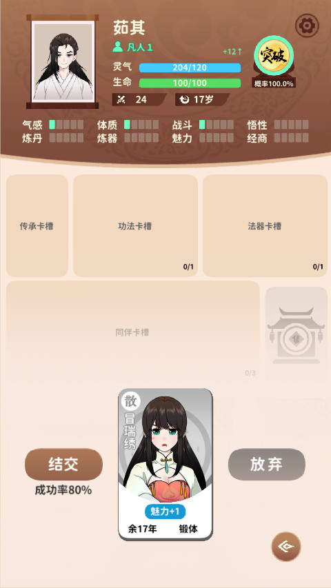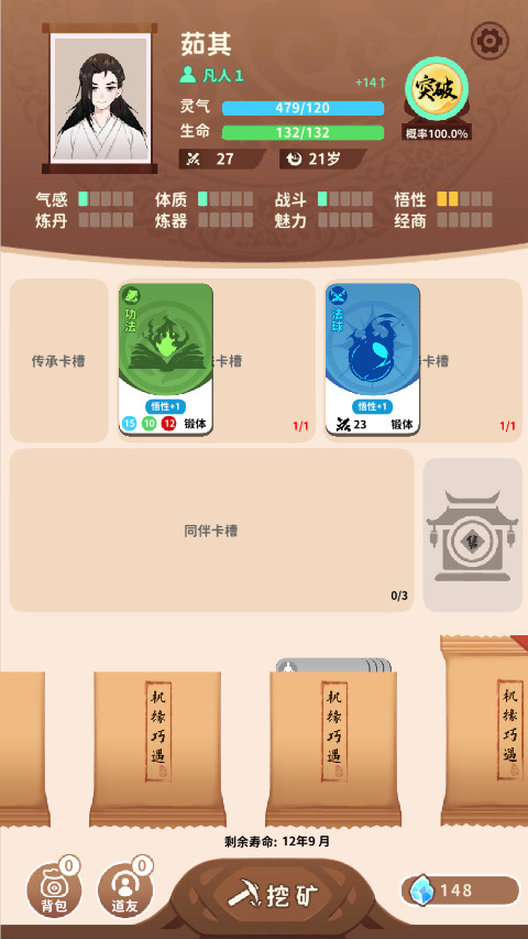 轻度肉鸽修仙模拟,玩法简单易上手,每次轮回都是不一样的故事。