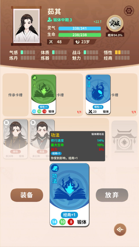 悟性:感悟时影响领悟出的功法品质(开卡包给好东西)