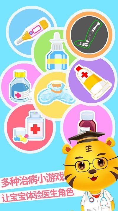 模拟儿童医院游戏,游戏的画风非常可爱,通过生动的互动场景让宝宝参与到整个医院看病治疗的过程。在游戏的同时可以让宝宝了解医院看病的相关常识。新颖创意的游戏故事情节,开发孩子的兴趣爱好,更多的了解不同职业的特征,让宝宝懂得预防疾病的相关知识。
