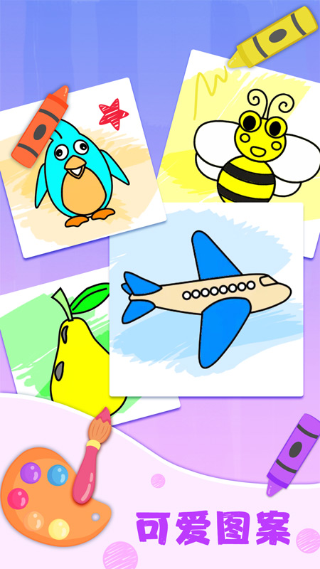 儿童填色是专为儿童设计的绘画启蒙游戏,玩家在游戏中给多种图画上色,只需简单的操作就能进行绘画涂色,能够提高对事物的认知和颜色感知力,发挥自己的想象力来将不同颜色填充上去,自主创作出一幅幅充满童真童趣的精美图画。