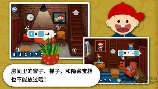 每栋房子内还包含多个房间,小朋友需要在房间里找到隐藏的数字,把加减乘除的等式填完整才能打开房间之间的通道。通过解锁最终隐藏的房间,赢取勋章。