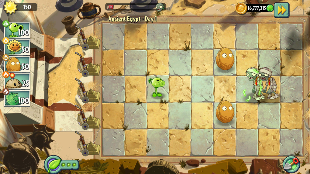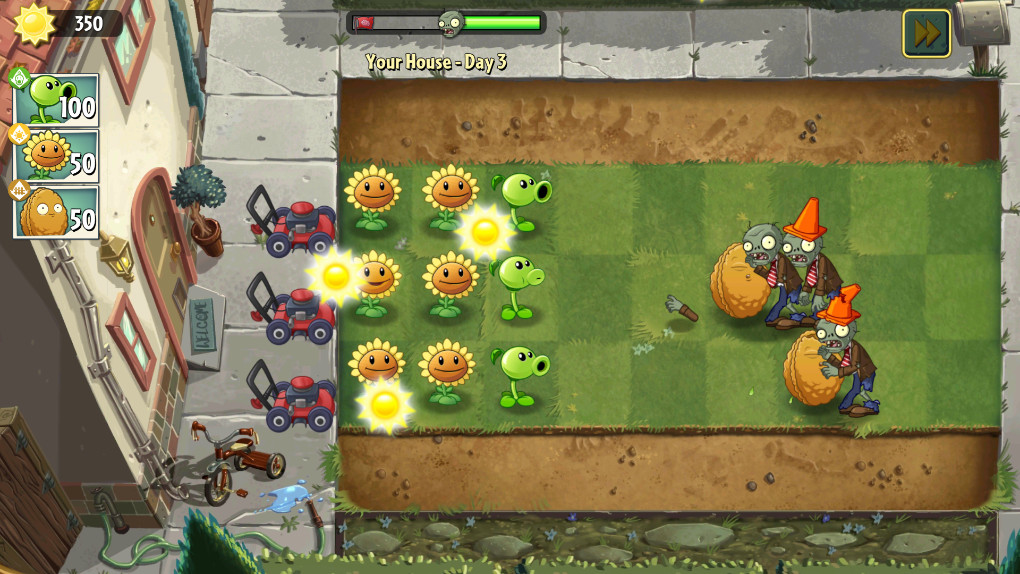 在玩耍时赚取种子包,并用它们为强效植物提供燃料。加强攻击,加倍防御,加快种植时间,甚至获得全新的能力。加强你的植物,确保那些僵尸都消失了!