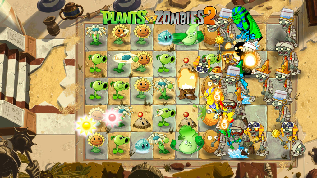 《植物大战僵尸2》是《植物大战僵尸》的全新续作。在沿袭了经典的植物防御僵尸玩法的基础上,新增了植物能量、手势道具、僵尸设定图及游戏关卡的选择场景,玩家将可以体验到古埃及、海盗湾及狂野西部三大主要关卡等新鲜元素。游戏同时集成了即时战略、塔防御战和卡片收集等要素,玩家控制植物抵御僵尸的进攻,保护这片植物园。