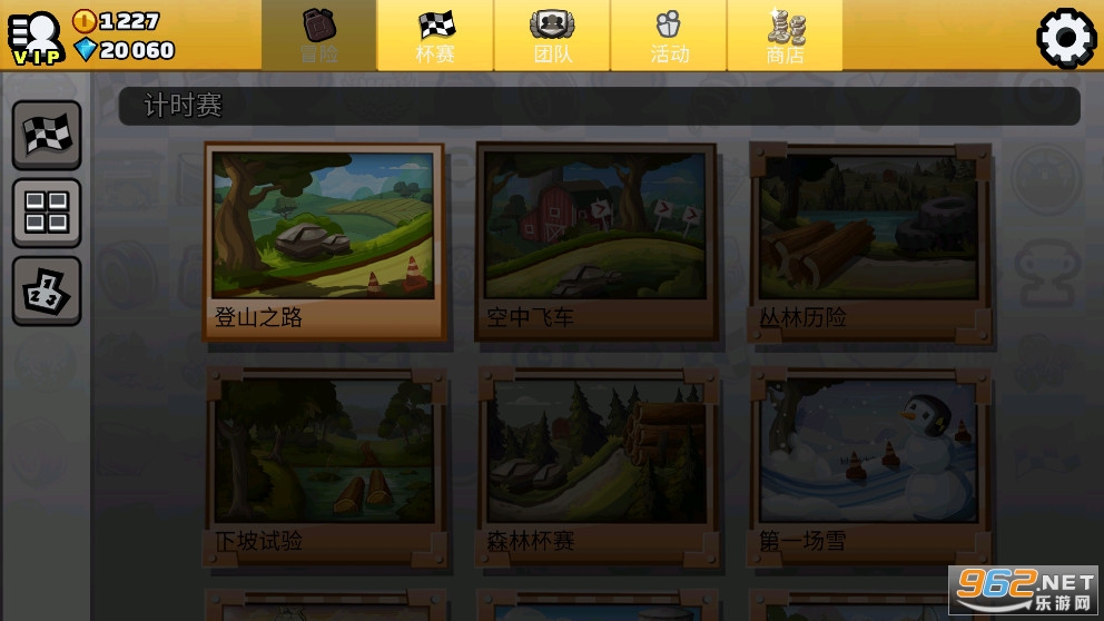 使用 20 种以上的车辆冲上山丘吧!赛车、卡车、摩托车甚至是坦克都任您选择!