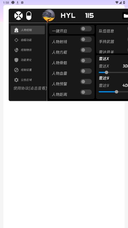 《和平花海容器》专为《和平精英》打造的智能辅助工具,集成3D人物透视、智能自瞄、物资热力图追踪等核心功能。一键开启敌方轮廓高亮,自动锁定头部目标;小地图实时标记稀有物资,抢空投快人一步。支持界面主题DIY与准星样式定制,兼顾实用与个性。低干预式设计稳定防封,助新手轻松上分,老兵高效夺冠,让每局游戏都成为战术表演!