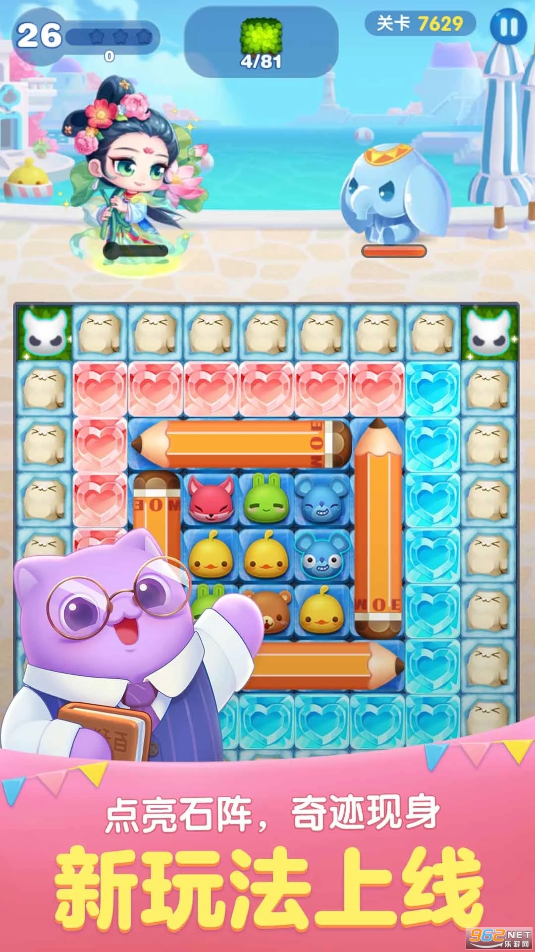 3、棋盘正中间、栅栏上方的格子,会不断的掉落随机宝箱,匹配消除它有较大概率获得各种特殊棋子。所以有机会,尽量在这附近连取一个特殊棋子,再与随机宝箱中的特殊棋子进行组合交换,进行大范围的消除,可以更快的完成过关任务。