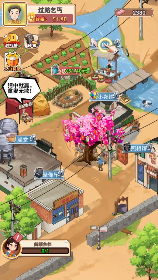 进入主界面,点击解锁鱼档,进货,招募员工,不断地升级鱼档为你赚钱