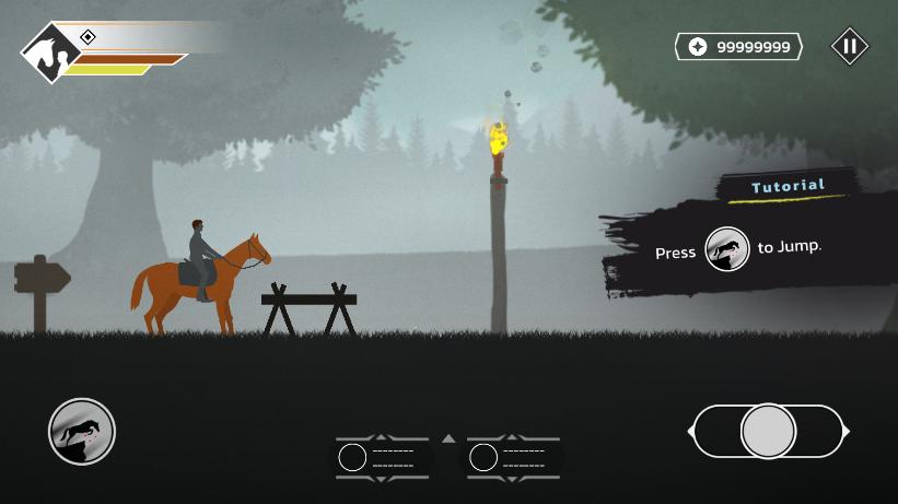 下载游戏后,进入其中,使用虚拟摇杆和跳跃键控制马背上的人奔跑