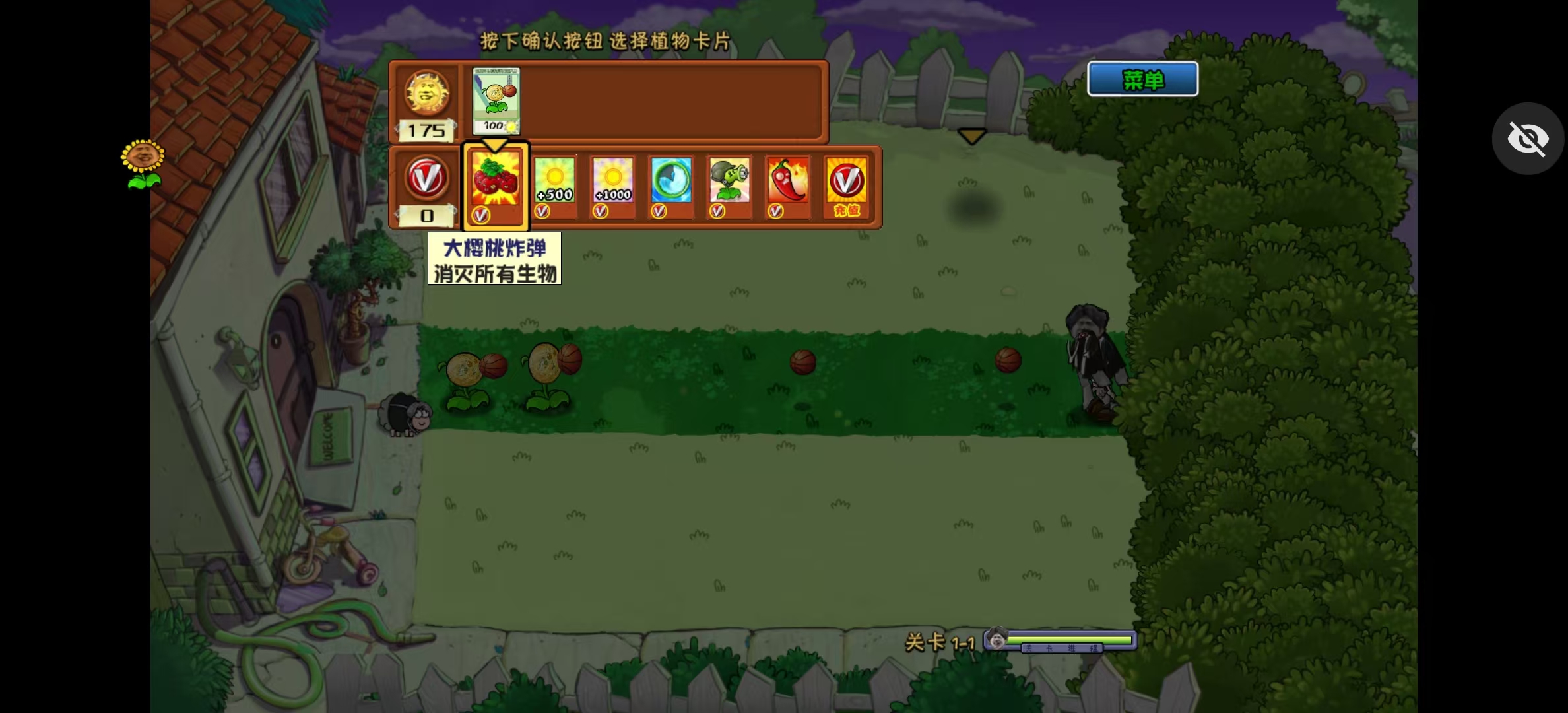 2、可以看到这里的植物和僵尸形象也全部换成了,IKUN专属的头像图样,按下确认按钮开始游戏。