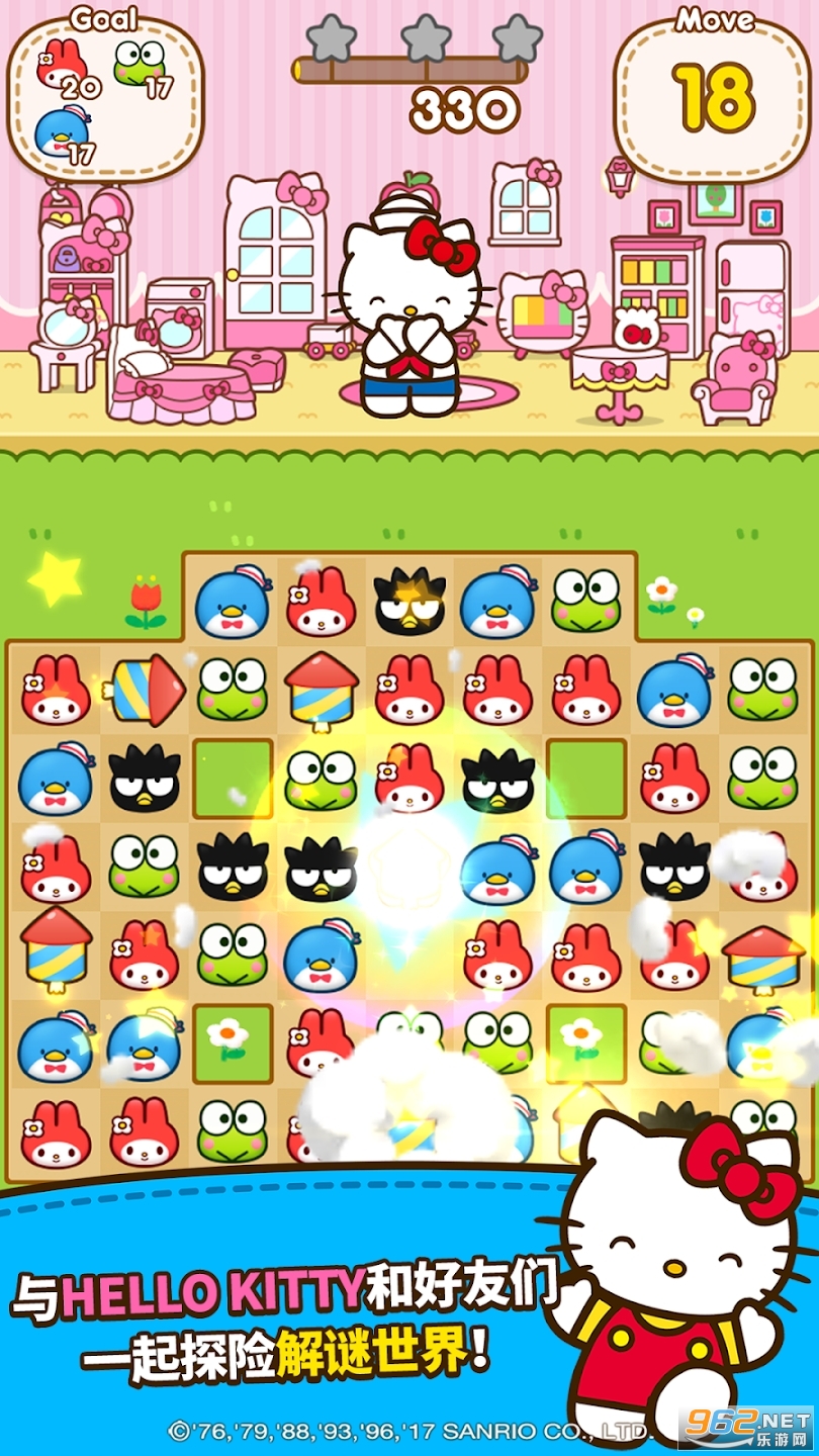 享受消除障碍方块带来的乐趣并探险凯蒂猫和好友们的世界吧!