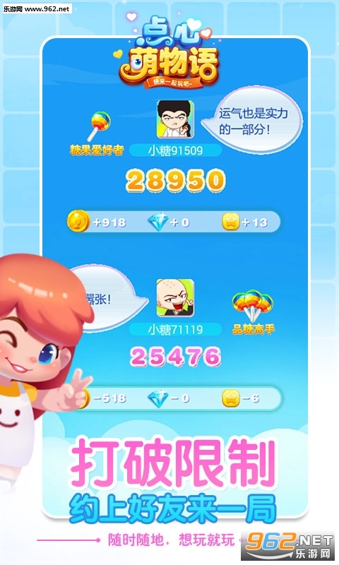一款好玩的糖果消除手游,经典对抗,一决高下争第一,酷炫特效,暴击糖果停不下来,打破限制,约上好友来一句,福利多多,豪礼每天送送送。