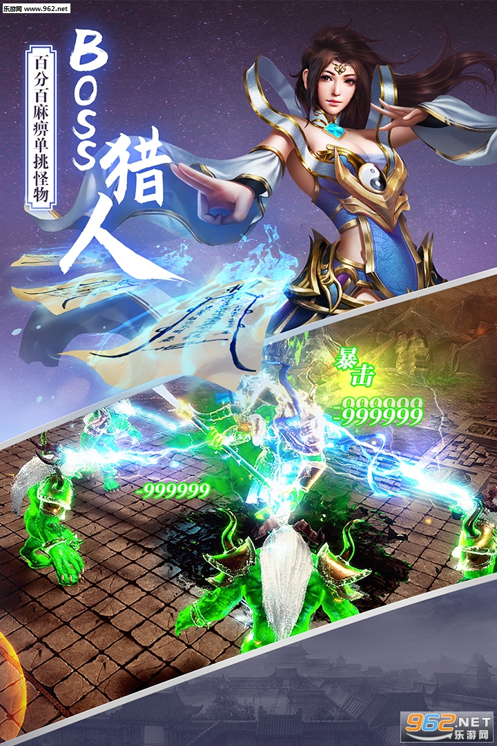 明星团队精心打造的游戏!这里是散人的天堂,这里是老玩家的福地!全新的单职业系统,帮会激战时可说是满屏尽带黄金甲,一手半月,一手雷电,再召个宝宝,三职业天赋尽集一身。酷炫的技能闪亮屏幕,华丽的时装随便组合,各色称号让你大开眼界。超精细的操作,丰富的技能搭配、更可打开脑洞创造属于你的BOSS专属打法。超小的安装包,快速进服体验,无论战斗、组队、任务、挂机,都随心所欲,一触即发!