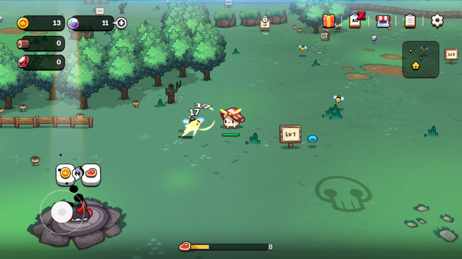 消灭怪物获得肉,肉可以在特定建筑中兑换为金币