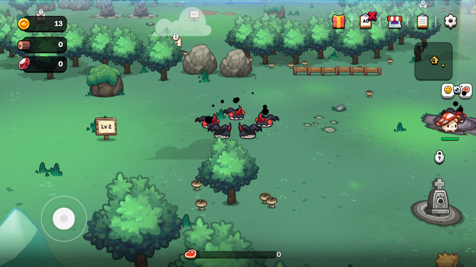 控制蘑菇进行移动,蘑菇会自动进行攻击