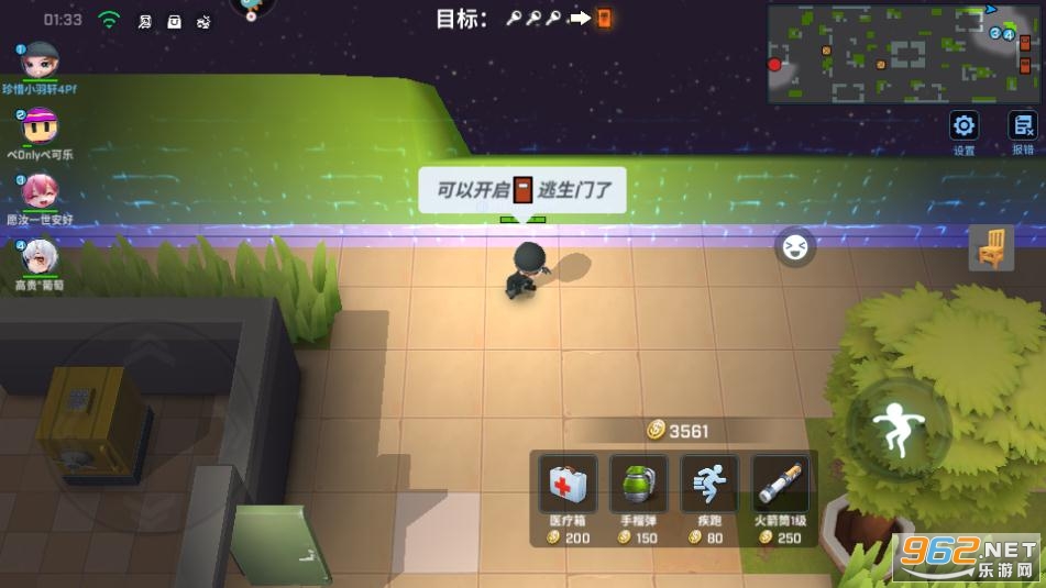 逃跑者开箱子可以获得金钱与钥匙,钥匙数量足够的话便能打开逃生门便可走掉;