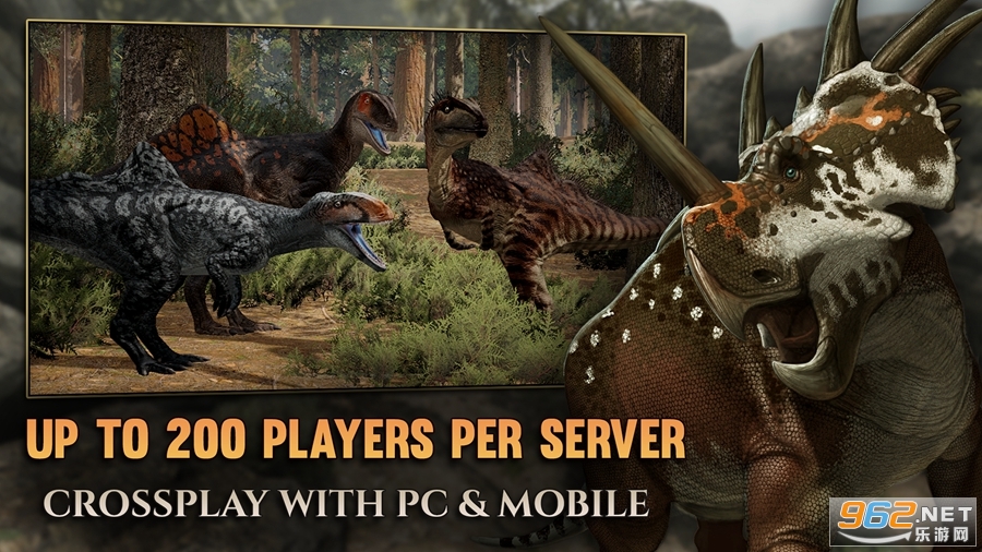 从刚孵化的婴儿开始,然后成长为成年恐龙!超过 25 种恐龙物种可供游玩,包括异特龙、棘龙、剑龙和肉鳄等最受欢迎的恐龙物种。狩猎和攻击其他玩家,保护自己,不要被吃掉成为 Panjura 的顶点!