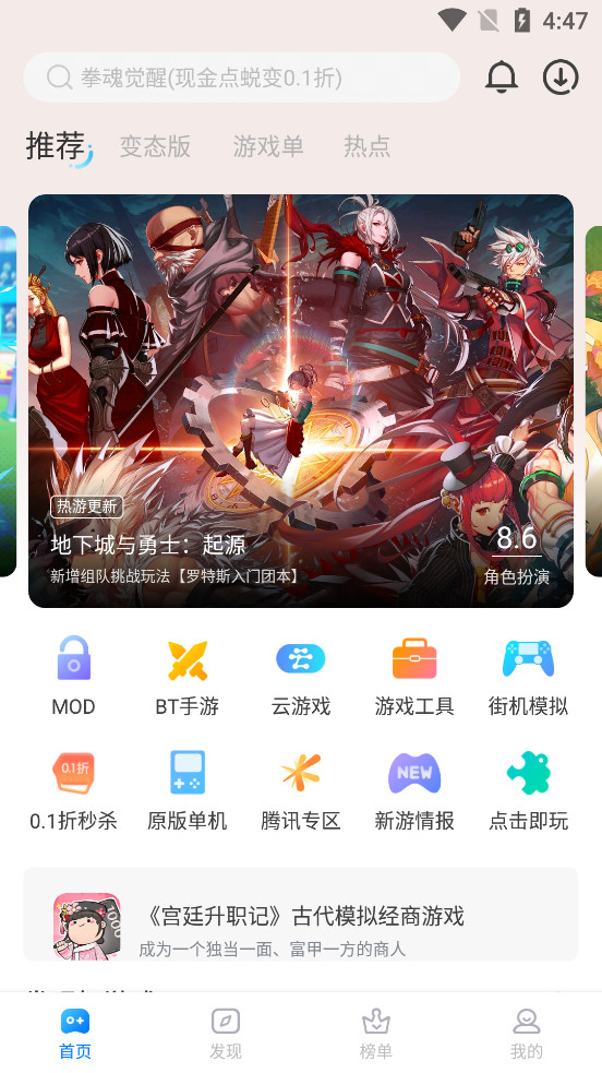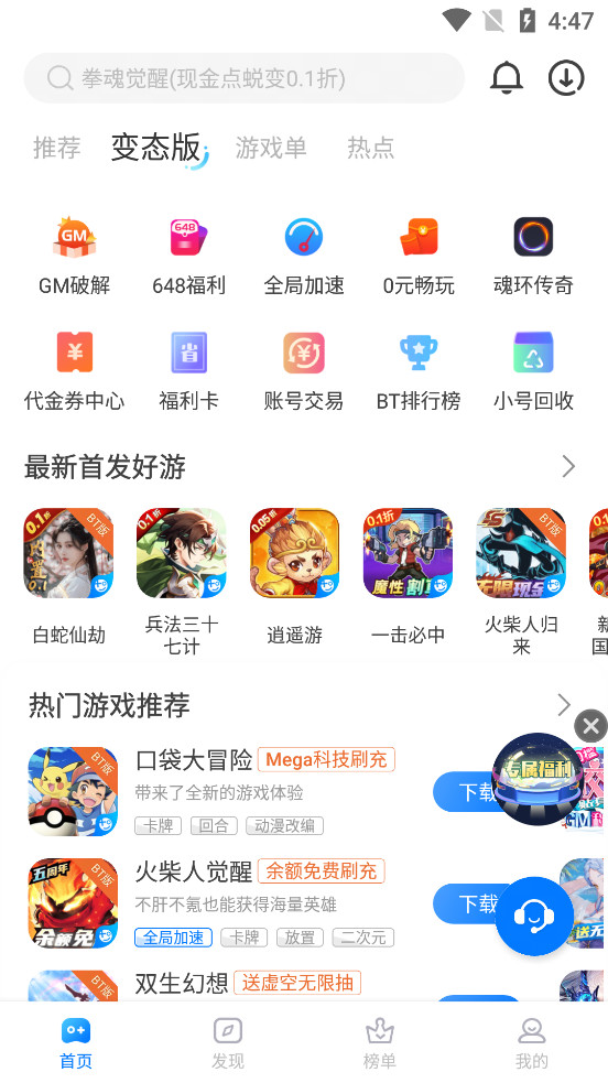 3.BT游戏官服保障、上线送VIP、无限元宝、GM特权、手游加速。