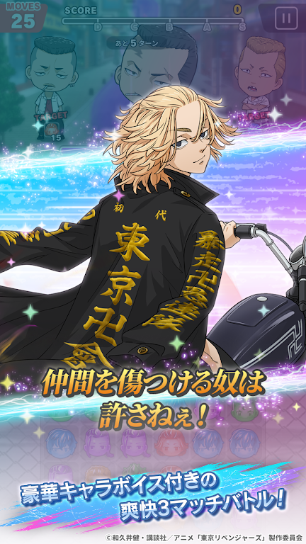 《东京复仇者拼图复仇!迈向全国制霸之路》是一款由GOODROID推出改编自和久井健创作的《东京卍复仇者》的益智RPG手机游戏。本作是一款与《东京复仇者》花垣武道、佐野万次郎(Mikey)、龙宫寺坚(龙坚)、场地圭介、松野千冬等人气角色成为伙伴,组成专属东京卍会的,游戏目标为打倒各地方阻挠的强敌,达成全国制霸的目标。