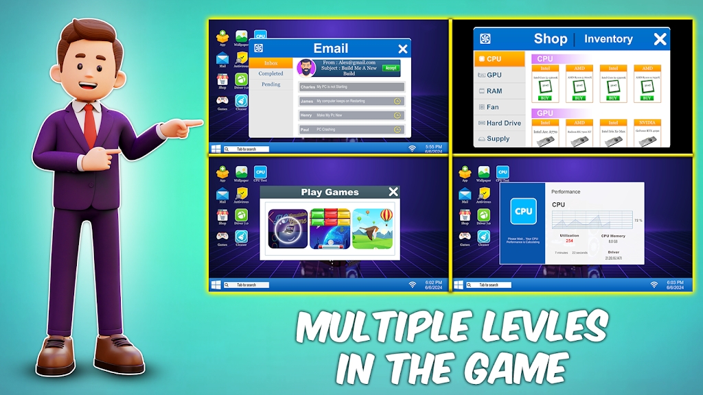 引人入胜的迷你游戏模拟,为您的PC构建和PC维修之旅增添乐趣。