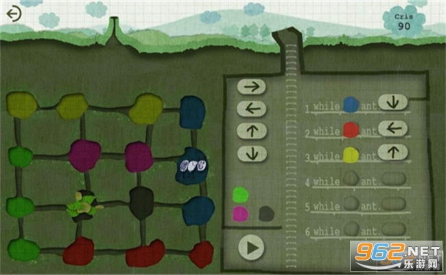 蓝蚁代码安卓版(blueAnt)是一款大人和小孩都适合游玩,可以帮助初步接触和了解编程的思维、训练逻辑能力的益智游戏。游戏中玩家需要通过编排指令的方式来控制蓝色的小蚂蚁在洞穴中移动,正确的编程结果可以让蚂蚁将树叶安全地带回自己的家中。