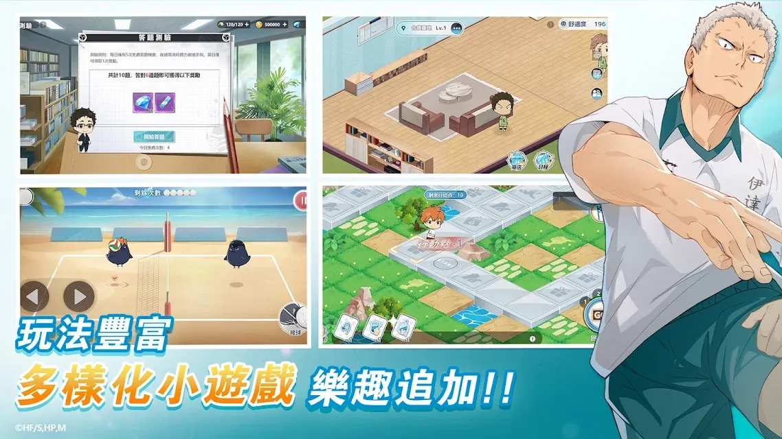 玩法丰富多样:除了基础的排球比赛玩法外,游戏还融入了趣味问答、集训远征等多种多样化内容。这些玩法不仅增加了游戏的趣味性,也让玩家在轻松愉快的氛围中感受「排球少年」的魅力。
