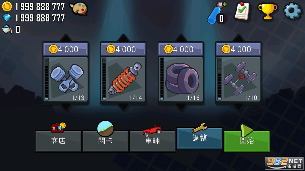 可调部件包括发动机、悬架、轮胎和 4WD