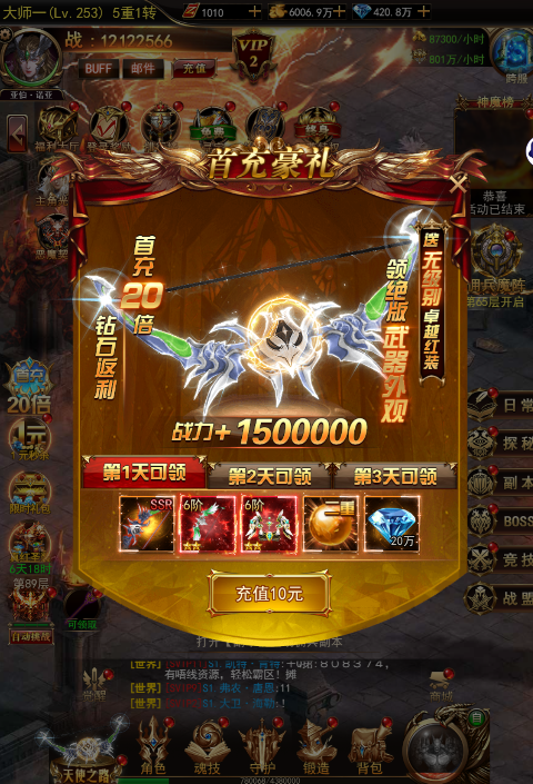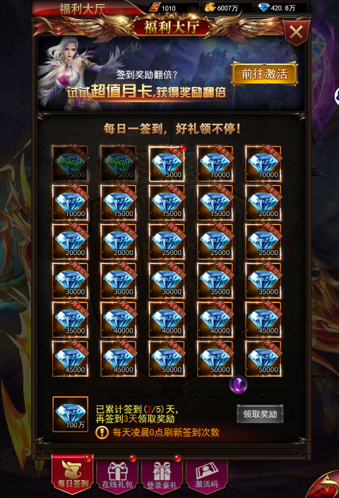 ★上线福利:闯关送V10,100W钻石,1亿金币