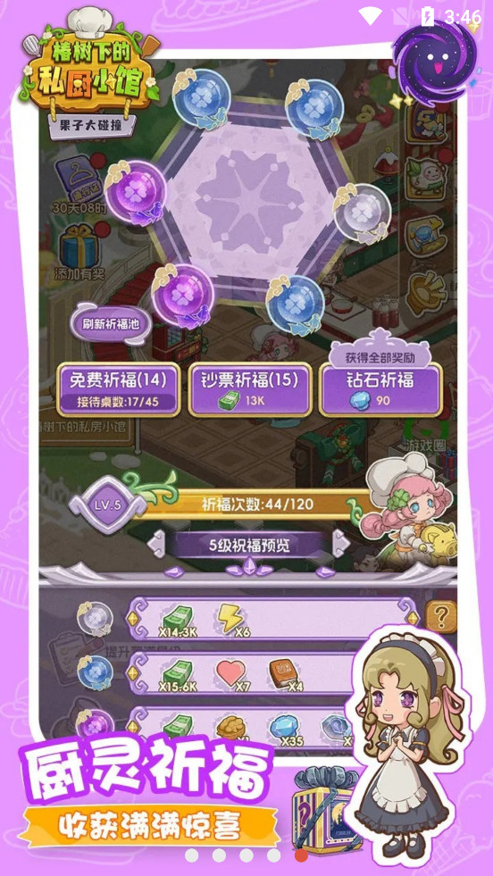 在布置温馨、氛围舒适的私房菜餐厅里,我们将一起度过美好的经营模拟时光,您需要通过提升装修环境、招聘升级员工、合成高级记忆、回想升级菜谱等帮助餐厅升级,一步走向厨神巅峰。此外,丰富多彩的游戏活动将带您体验不同的餐厅风格,魔法古堡、梦幻甜品屋、森系都市…二楼还有萌萌哒小精灵,让馆长们体验养成探索的快乐~重获厨神的称号注定不是那么容易,但是相信馆长们一定可以一路晋级,最终找回丢失的记忆,重回巅峰!