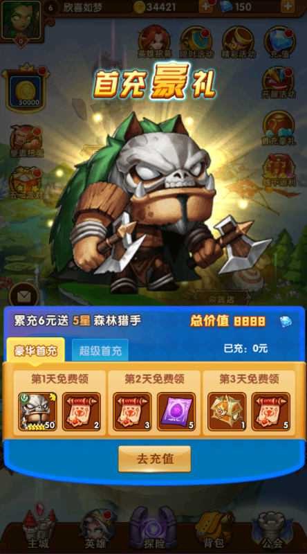★首充双倍返利,送十连抽,5星英雄自选箱!