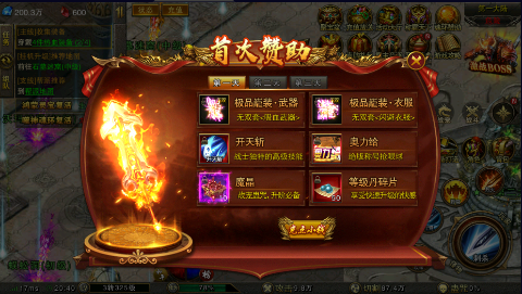 3.首充武器——「巃」无双≮天火巨剑≯,获得刀刀16800点吸血属性,搭配上狂暴之力的刀刀切割属性,打怪效率简直不可想象!再领取魂环赞助赠送的无限制·超级修为丹,快速提升转生优势!