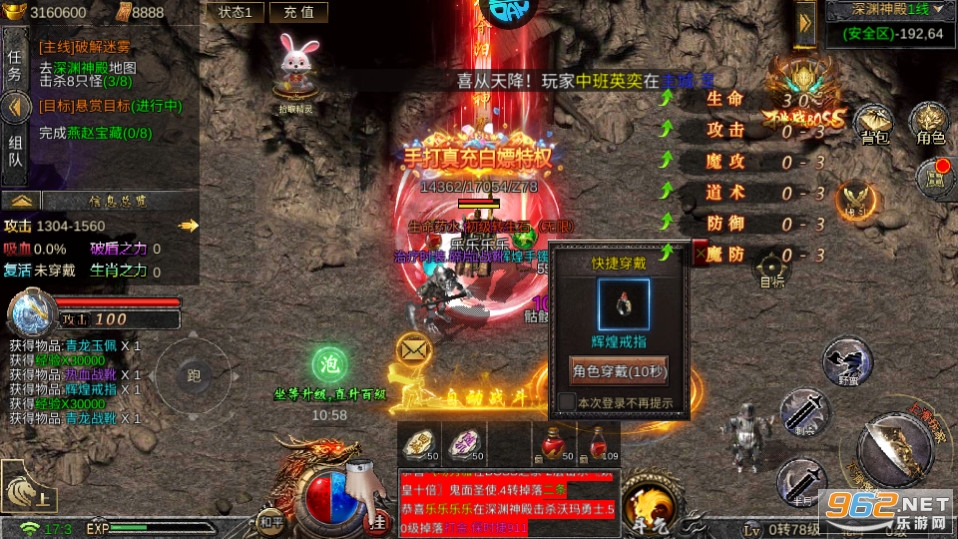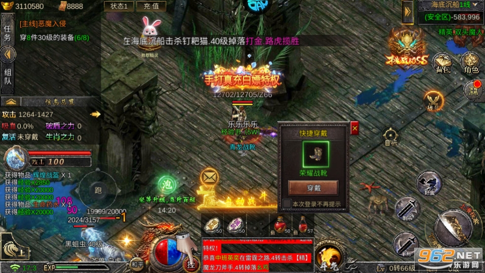 2、登录即有超快攻速buff等你去刷怪,各种各样的小怪可以轻松爆出神装,超多的装备可以自由搭配使用。