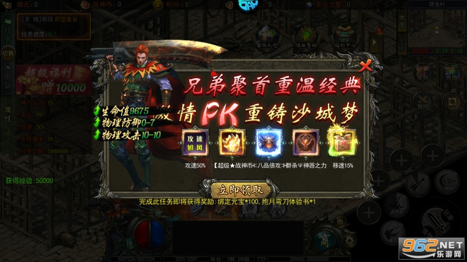 1、游戏以主线打金任务为主,玩家可以通过主线任务获取大量装备、道具等资源,获取的装备、资源可以直接穿戴或使用。