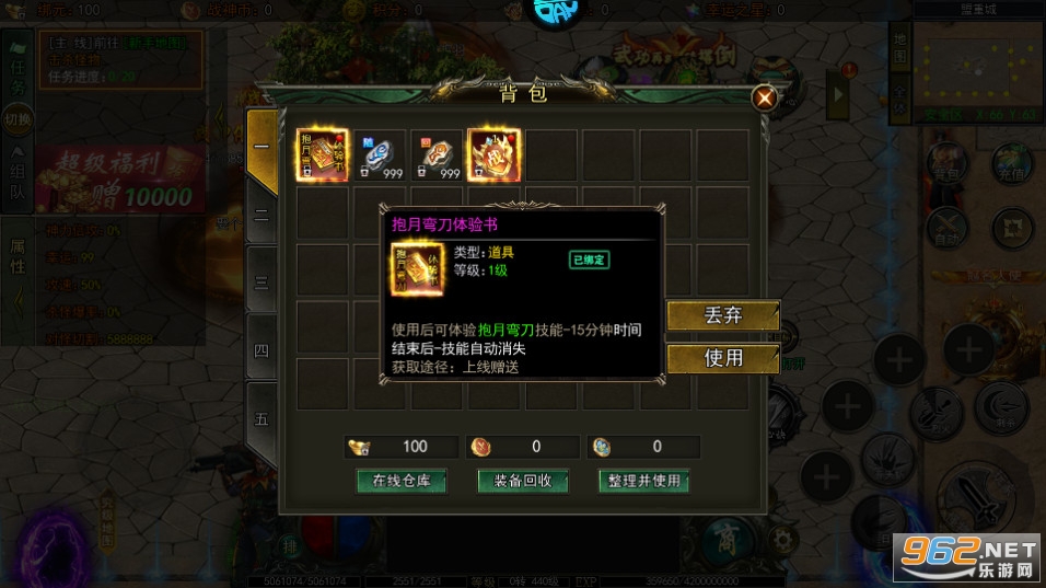 2、玩家获取的大量低级装备还可以进行回收,兑换大量元宝。