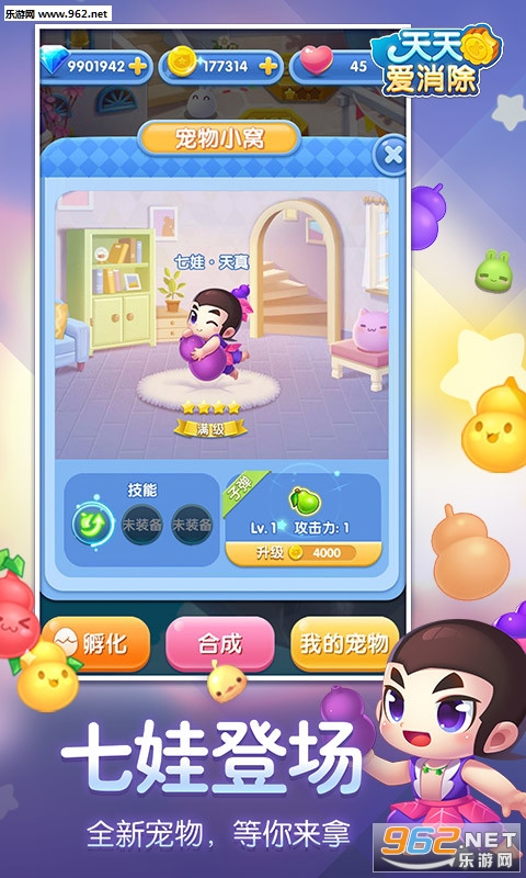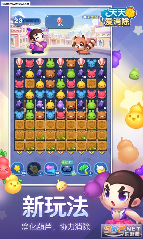 《天天爱消除葫芦兄弟版》这是一款有腾讯公司出品的消消乐类闯关手游,游戏画面非常的可爱完美,各种各样的道具和消除闯关特效更是琳琅满目,十分的炫酷精彩,丰富的游戏关卡让玩家嗨翻不停享乐不止,多种哟西模式更是让玩家根本停不下来。
