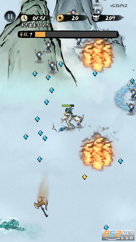 这是一款休闲的龙割草游戏。在游戏中,你必须使用你的武器移动并控制你的方向来消灭你的敌人。