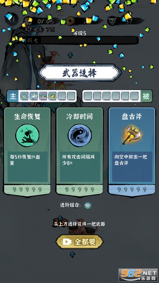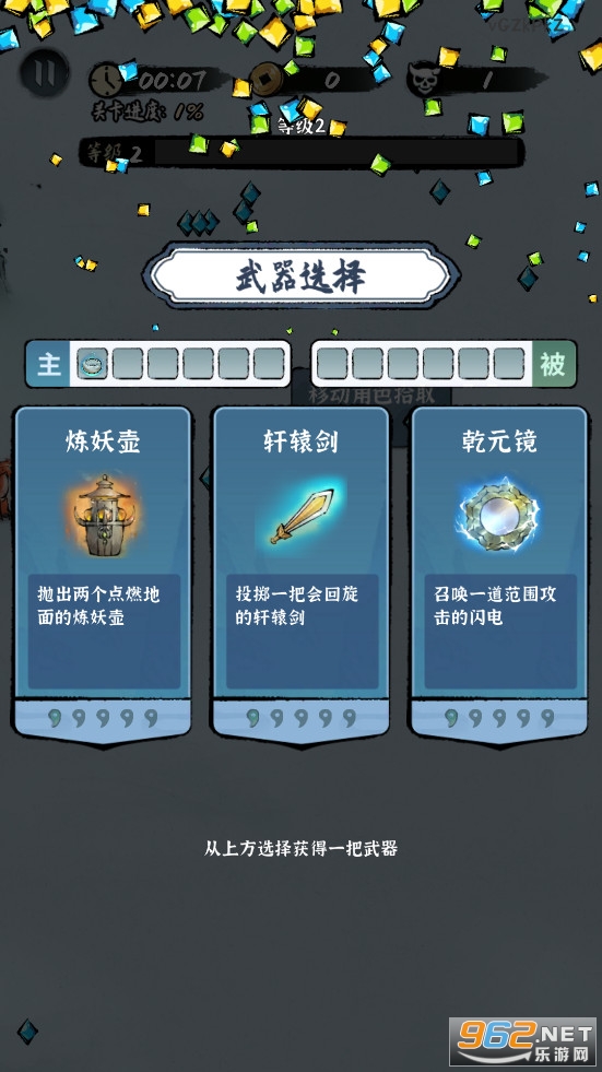 趣味的割草闯关游戏,有着丰富的技能可以随机获得,合理搭配,打造强大的攻击火力,游戏已修改,不同看广告即可获得大量的奖励,比如技能等,可以轻松的体验游戏。