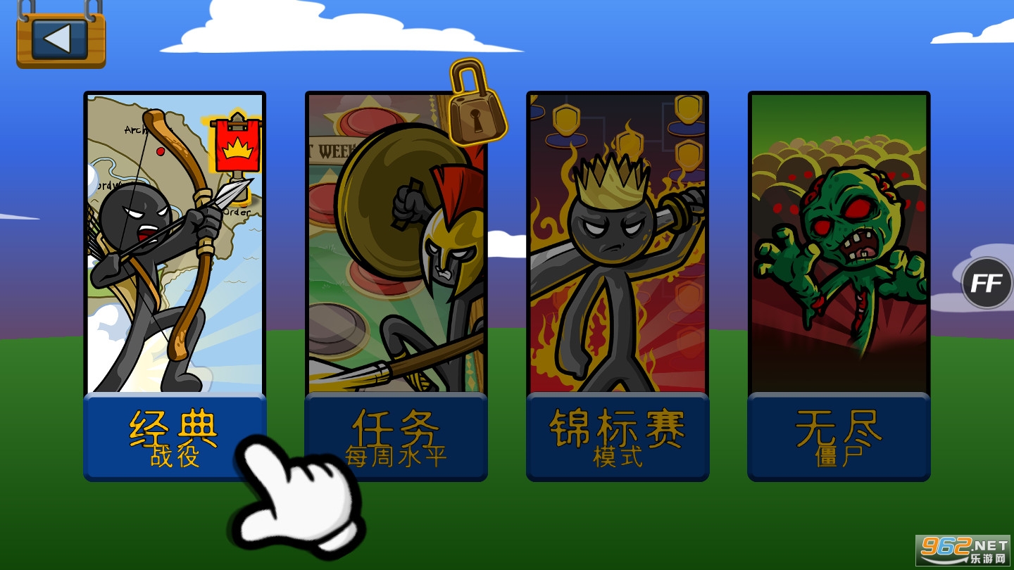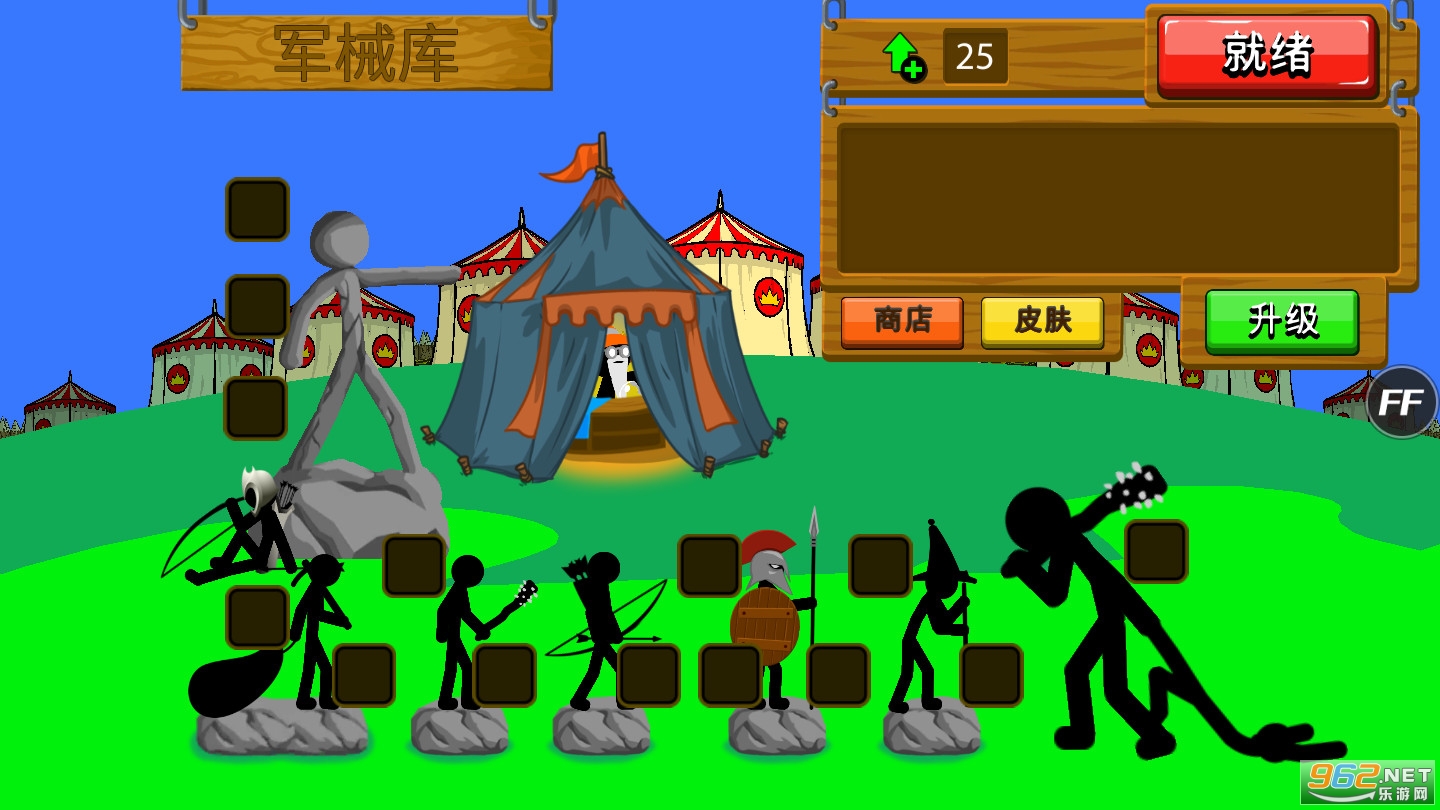 1、游戏中玩家将亲临激烈刺激的战场,指挥你的火柴人勇士进行作战,而且游戏中有着各种火柴人士兵可供训练;