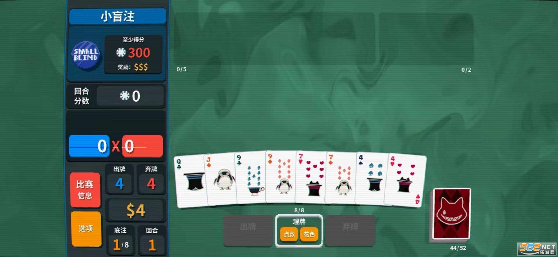 第五个方块卡组13个小丑位置4个消耗牌位置9次出牌8次弃牌